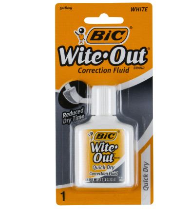 BIC® Wite-Out® Quick Dry Correction Fluid goes on easy and provides reduced dry time! The fluid covers photocopies, faxes, ink, permanent marker and more.